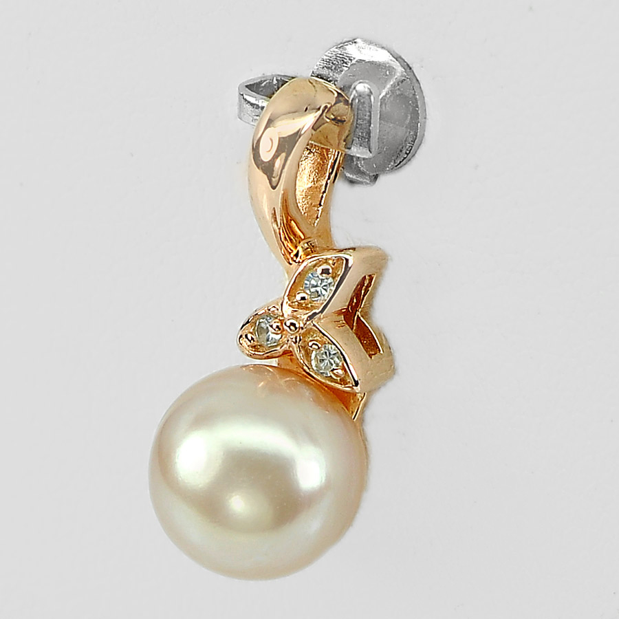 2.05 G. Matey Natural Orangish Pink Pearl Rose Gold Plated Silver Pendent