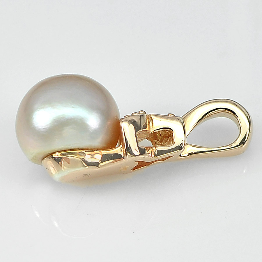 Center: Round Cabochon Natural Orangish Pink Pearl And Round White Cz