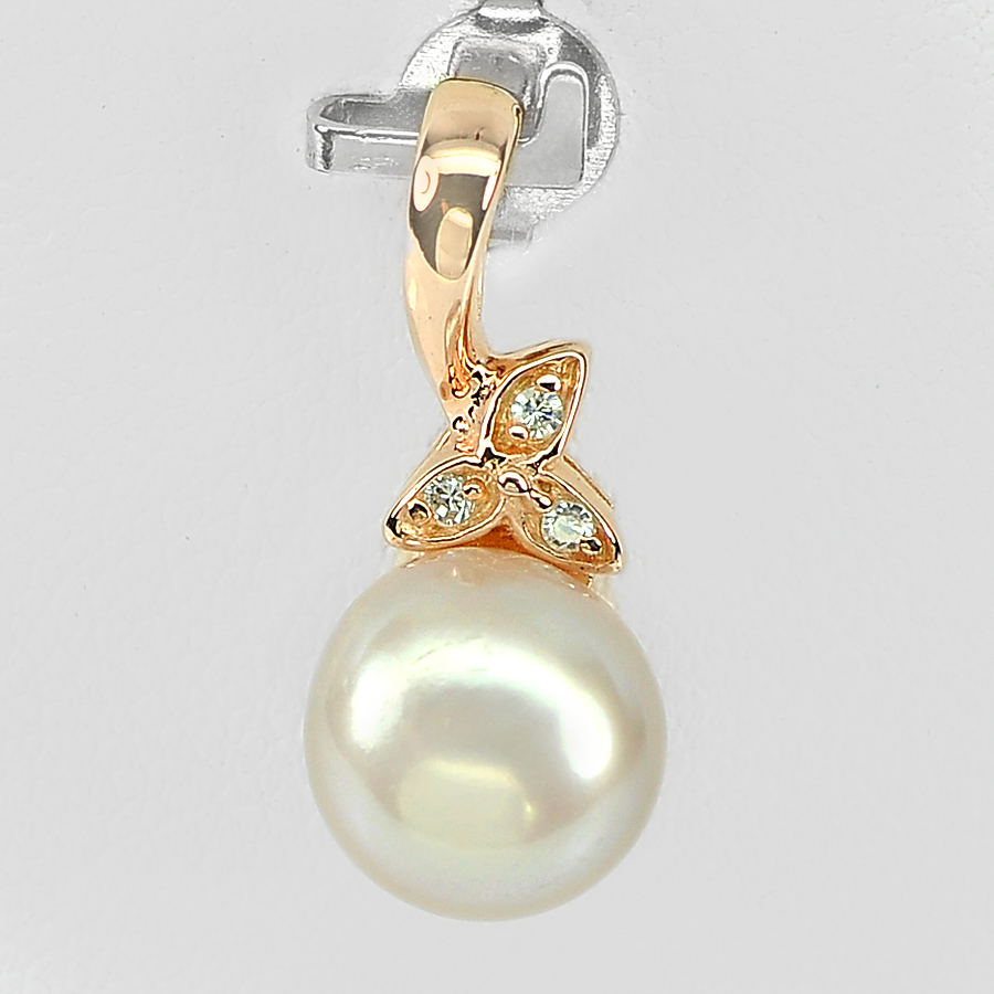 2.06 G. Attractive Natural Orangish Pink Pearl Rose Gold Plated Silver Pendent