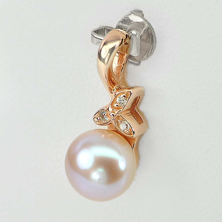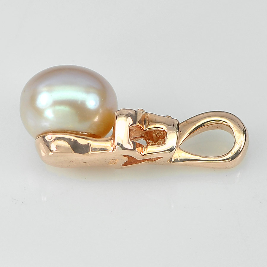 1.96 G. Matey Natural Orangish Pink Pearl Rose Gold Plated Silver Pendent
