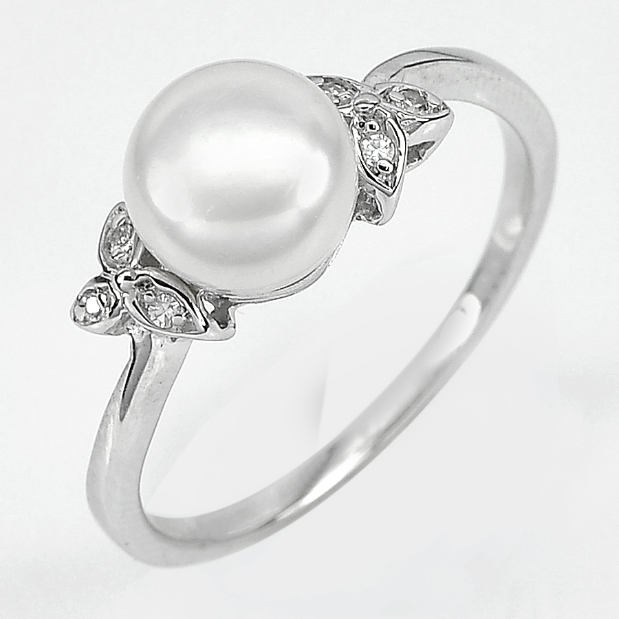 3.06 G. Natural White Pearl Jewelry Sterling Silver Ring Size 8