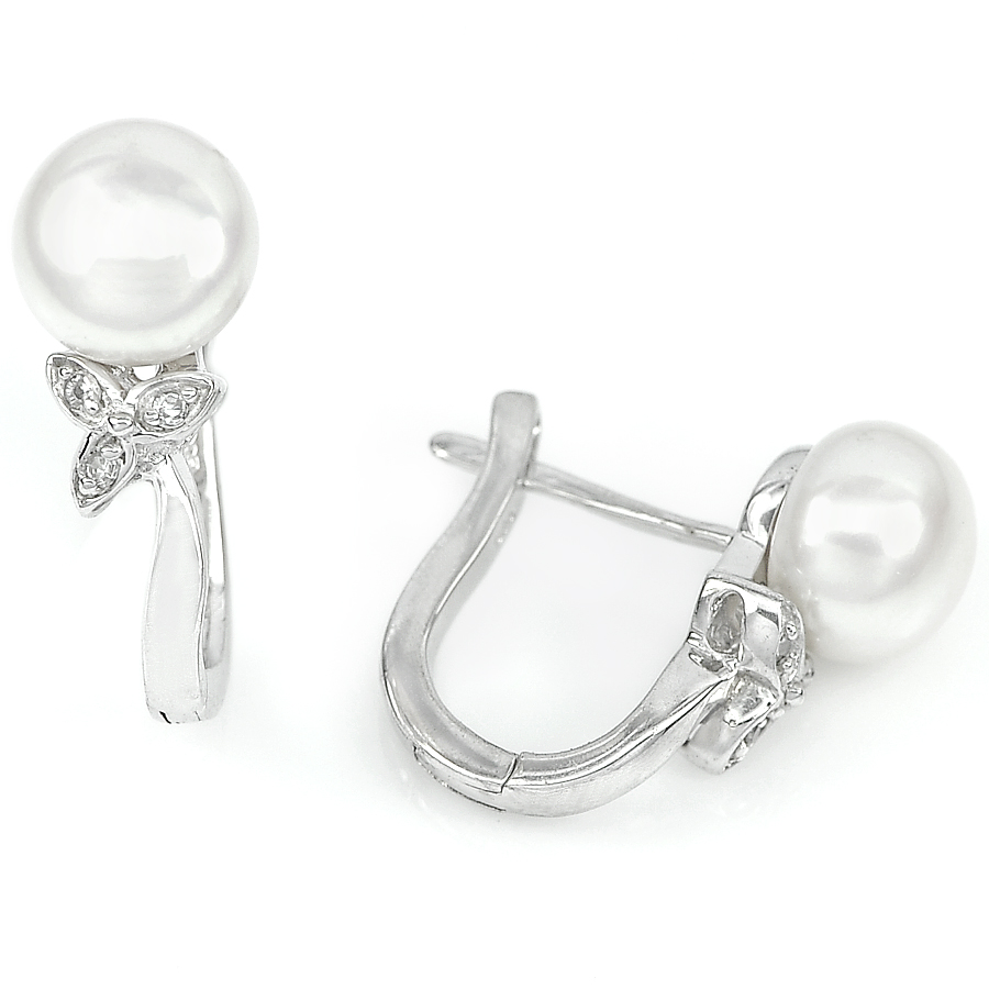 4.86 G. Seductive Natural White Pearl Jewelry Sterling Silver Earring