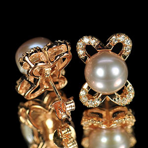 4.71 G. New Natural Purplish Pink Pearl Rose Gold Plated Silver Earrings