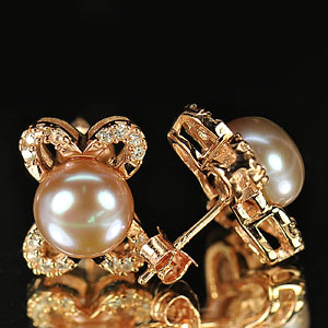 4.67 G. Natural Purplish Pink Pearl Rose Gold Silver Earrings
