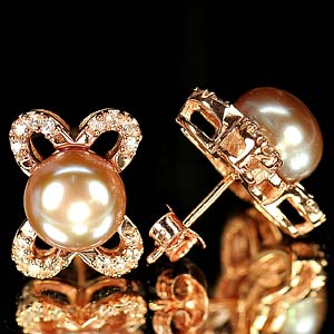 4.81 G. New Design Natural Purplish Pink Pearl Rose Gold Plated Silver Earrings