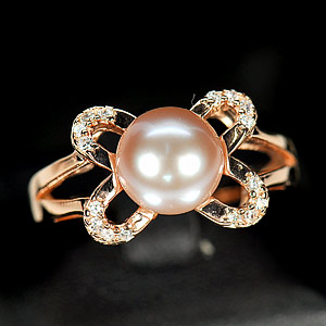 4.38 G. Matey Natural Purplish Pink Pearl Rose Gold Plated Silver Ring Size 9