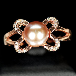 4.47 G. Vivid Natural Purplish Pink Pearl Rose Gold Plated Silver Ring Size 10