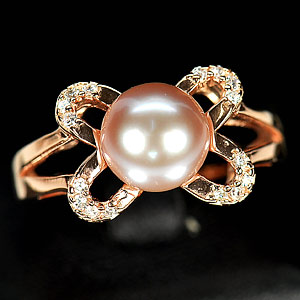 4.30 G. New Natural Purplish Pink Pearl Rose Gold Plated Silver Ring Size 8