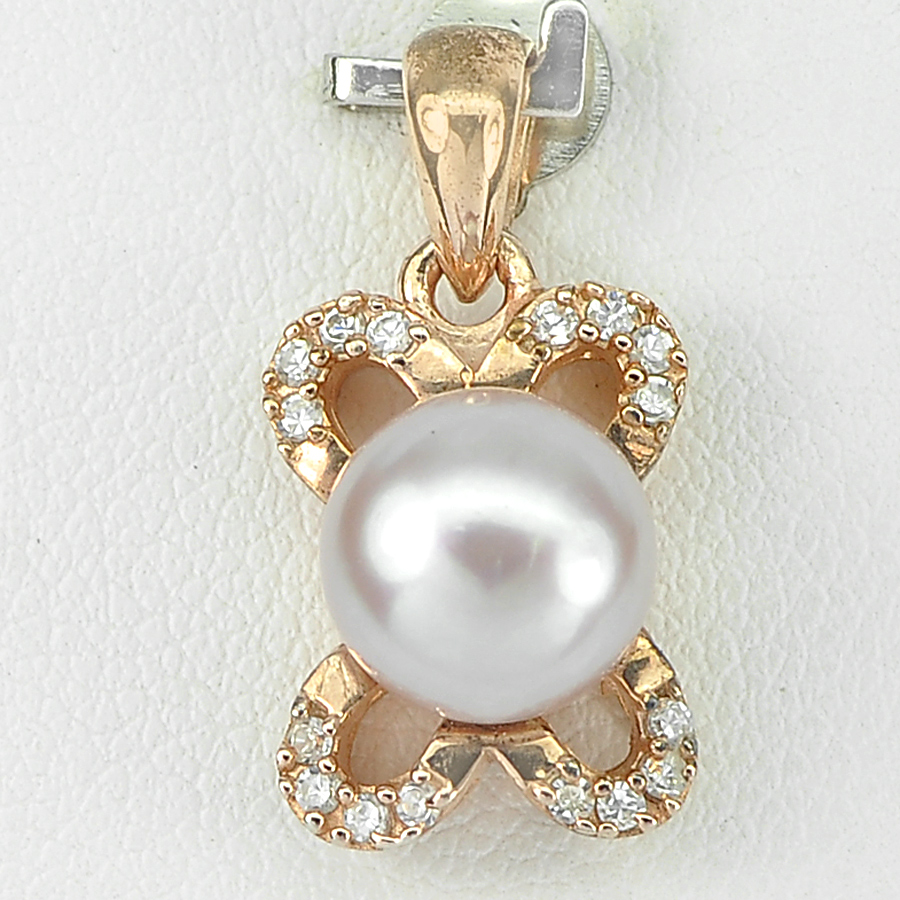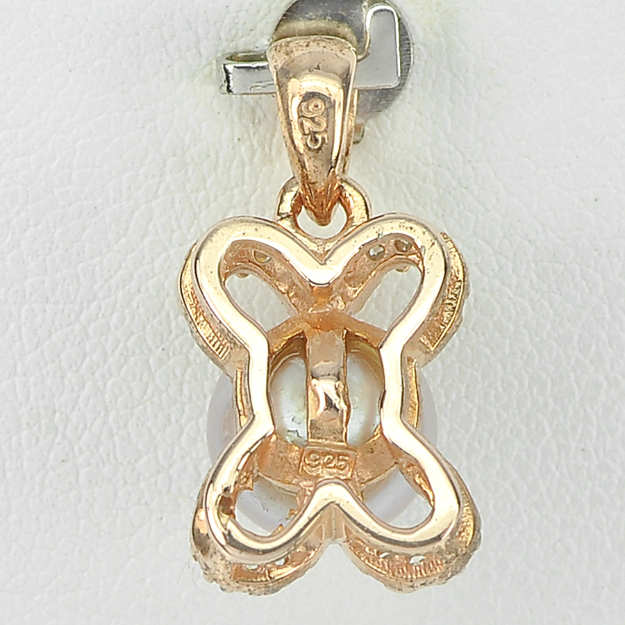 2.65 G. Colorful Natural Purplish Pink Pearl Rose Gold Plated Silver Pendent