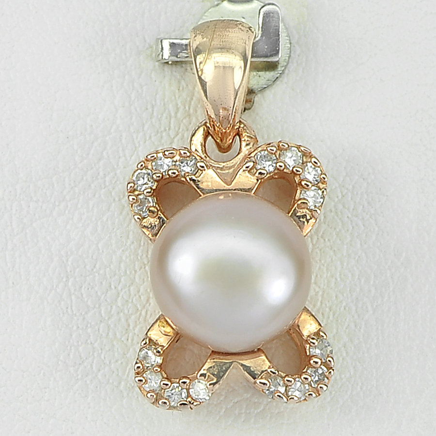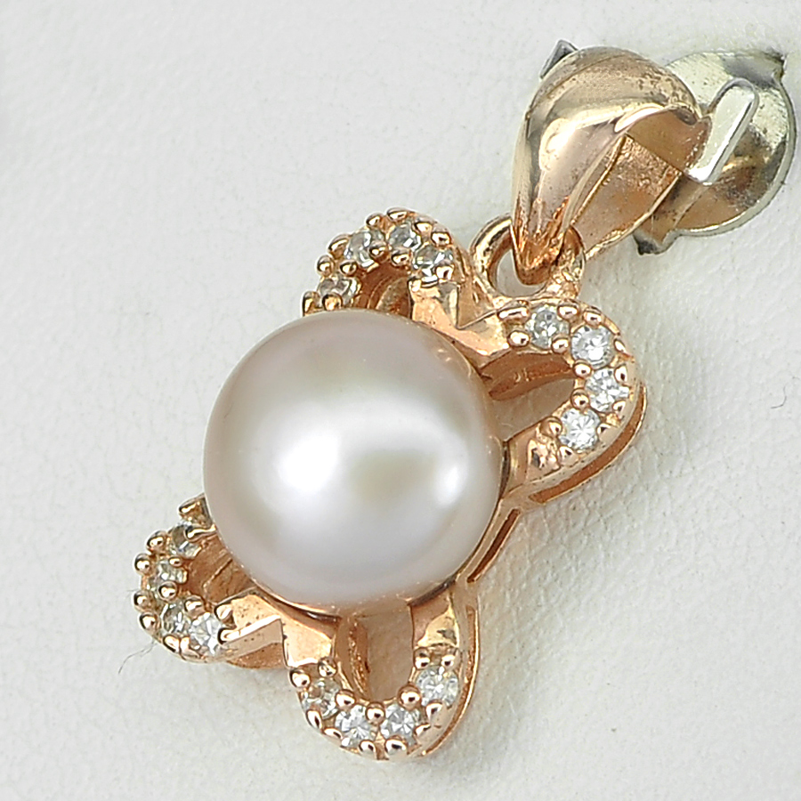 2.49 G. Colorful Natural Purplish Pink Pearl Rose Gold Plated Silver Pendent