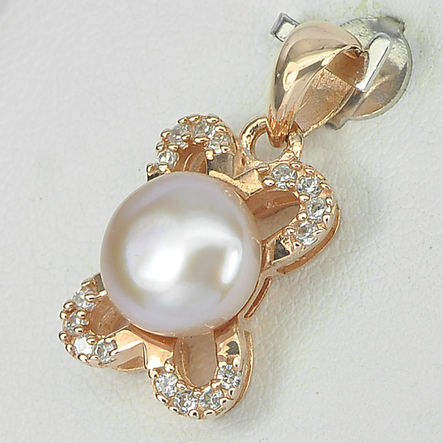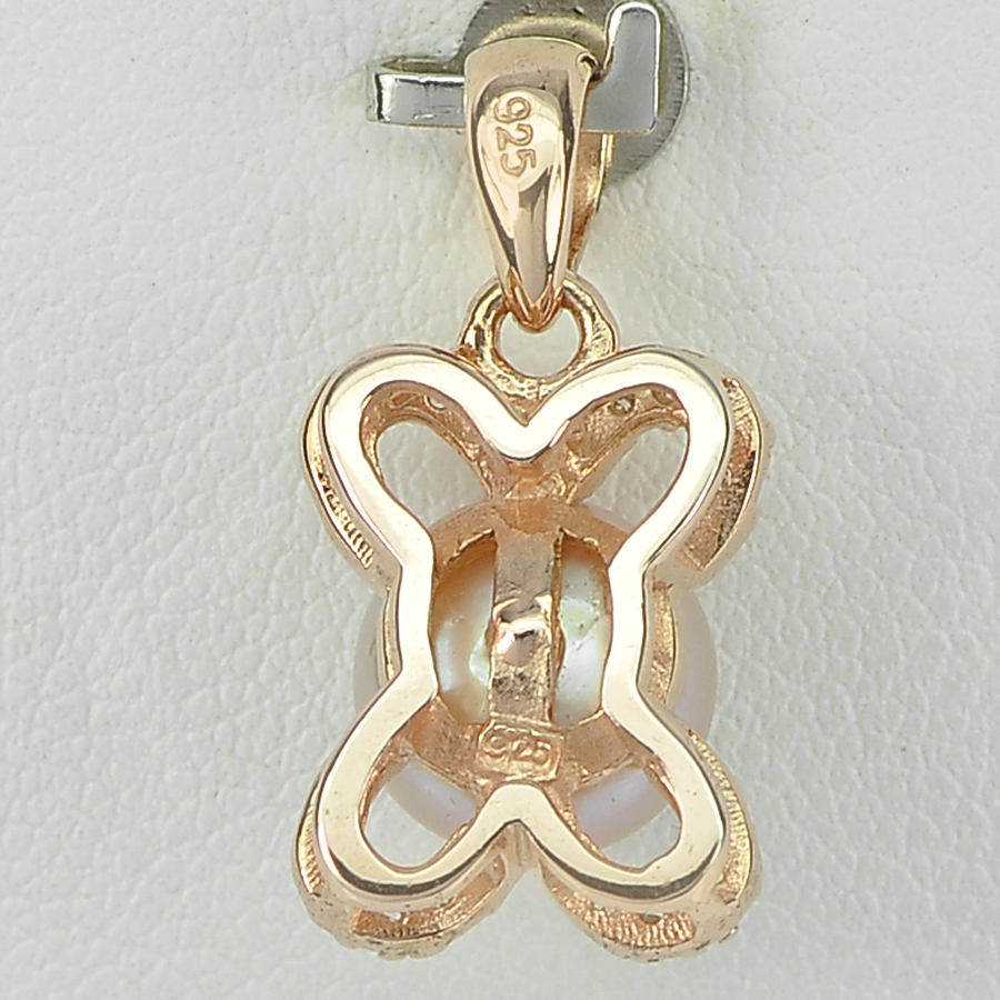 2.49 G. Alluring Natural Purplish Pink Pearl Rose Gold Plated Silver Pendent