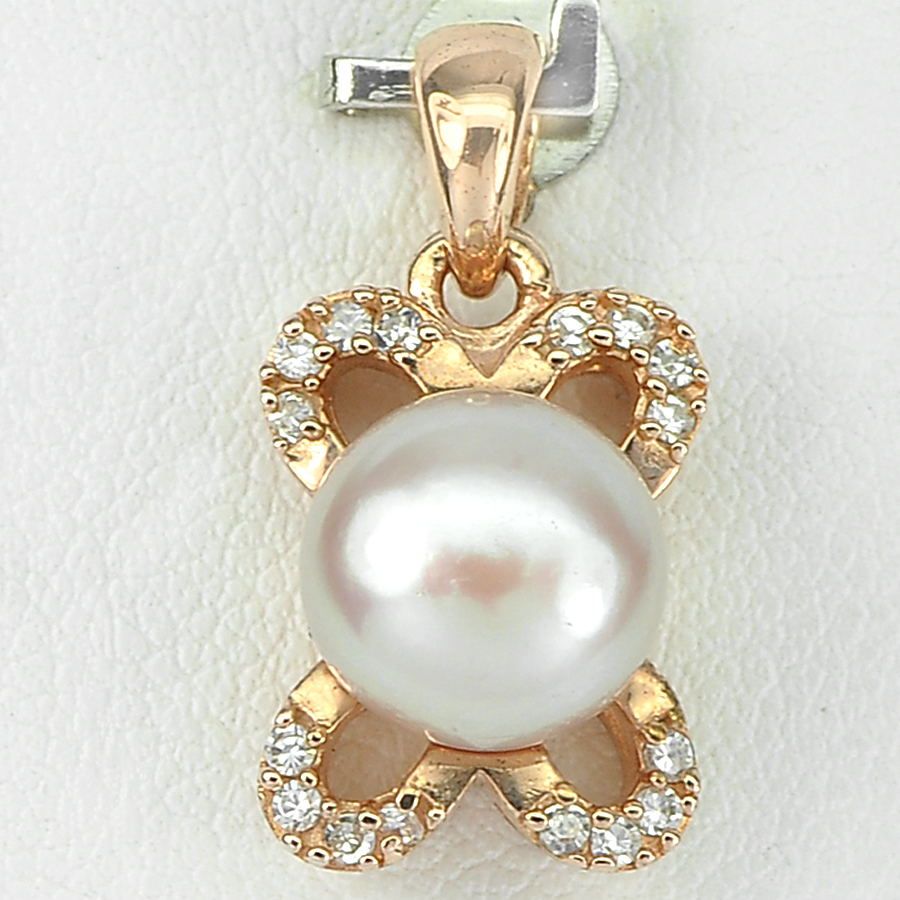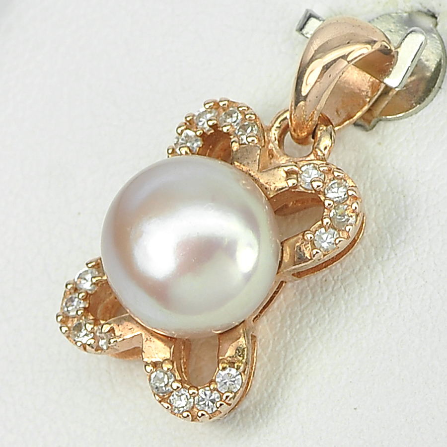 2.62 G. New Design Natural Purplish Pink Pearl Rose Gold Plated Silver Pendent