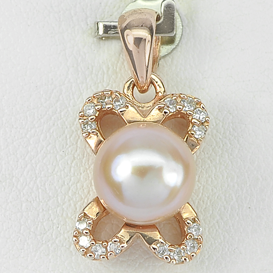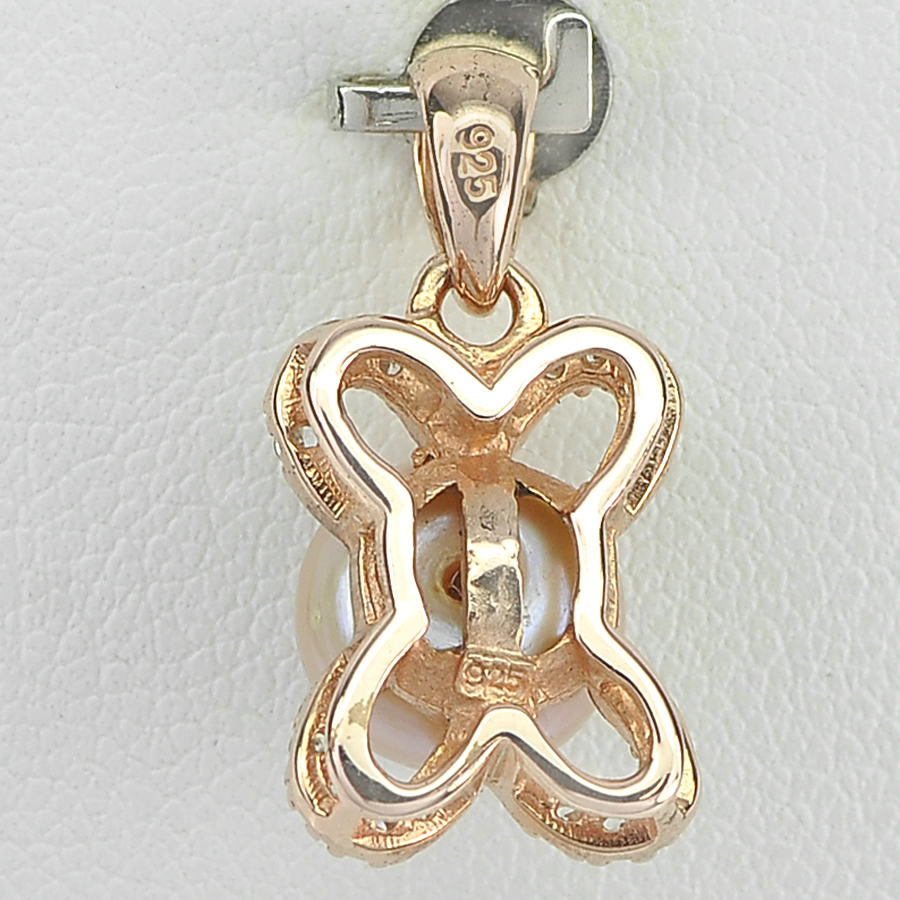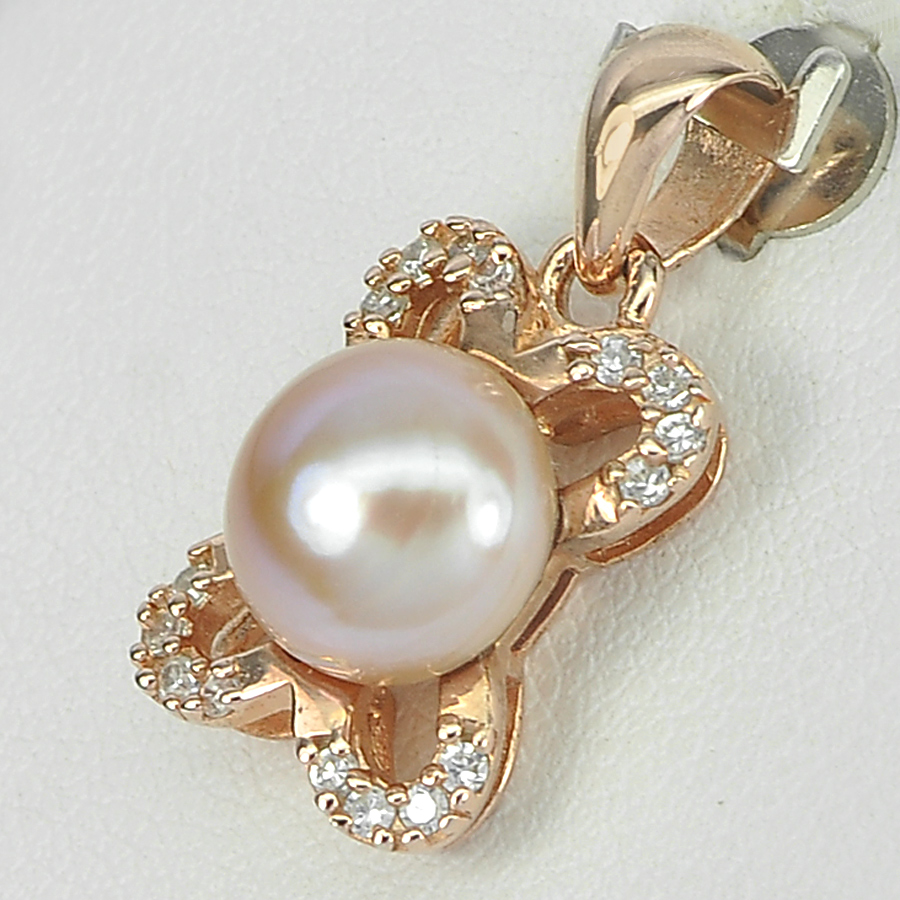2.51 G. New Design Natural Purplish Pink Pearl Rose Gold Plated Silver Pendent
