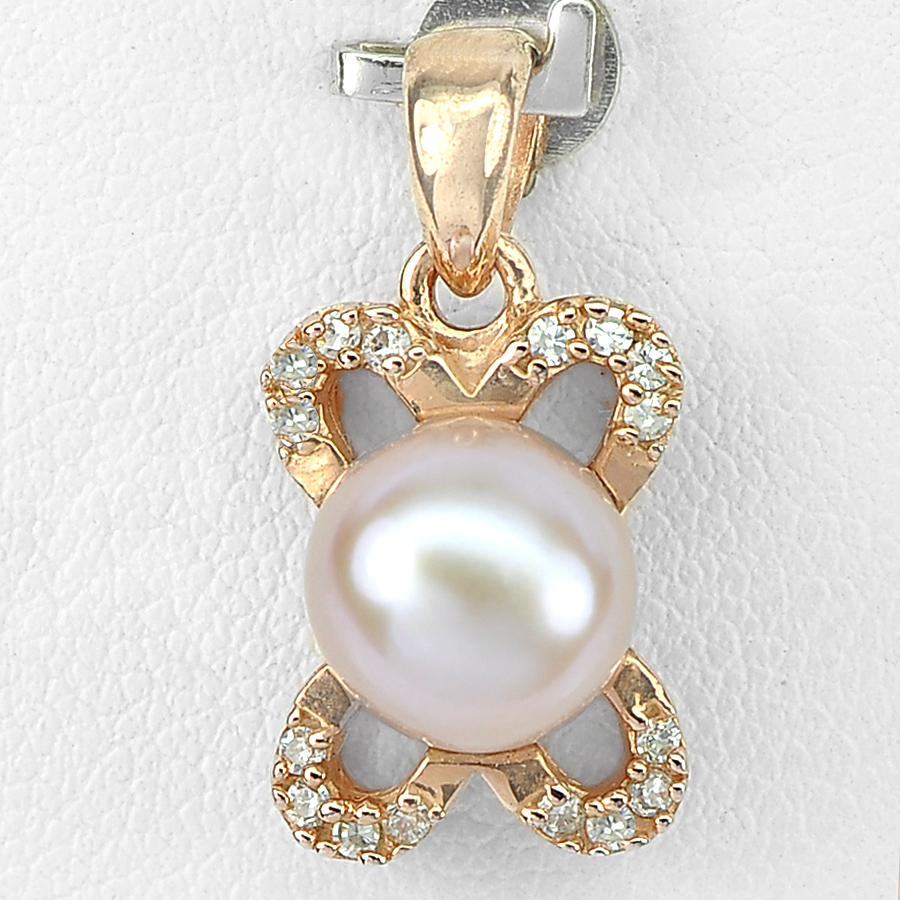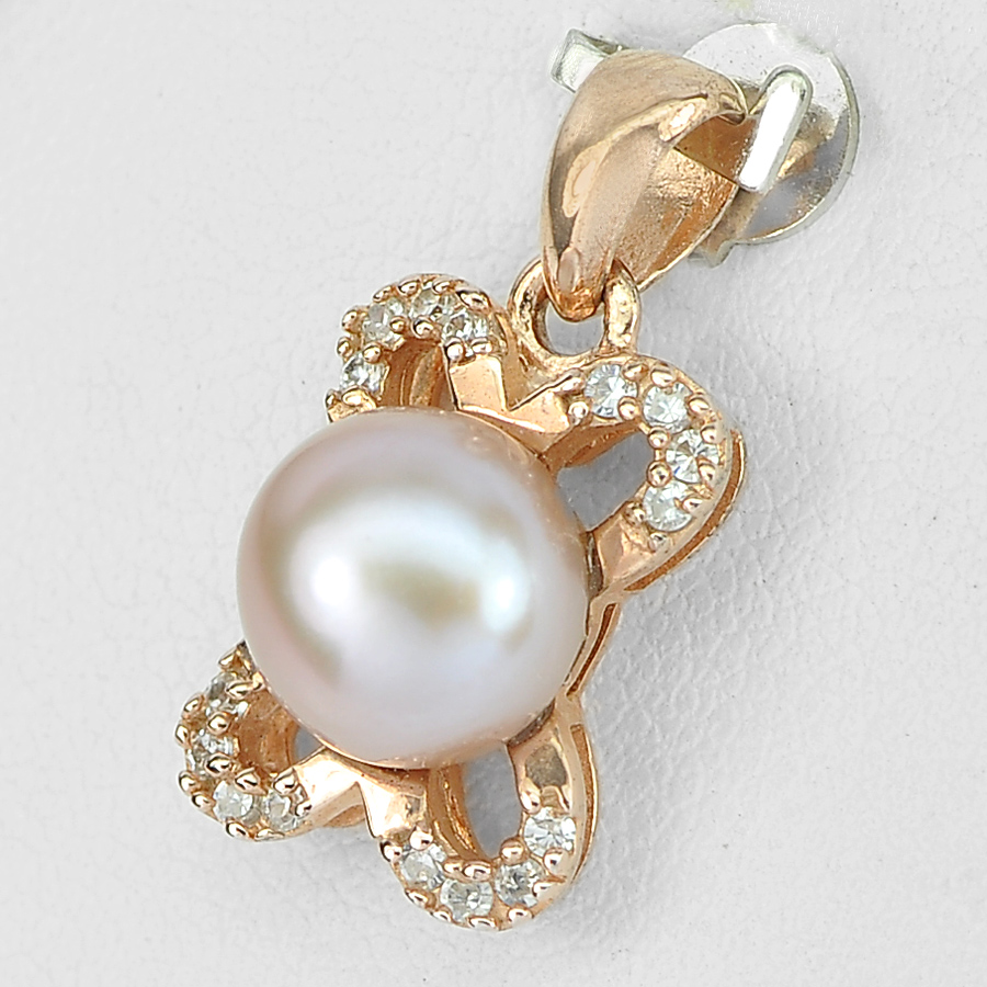 2.58 G. Alluring Natural Purplish Pink Pearl Rose Gold Plated Silver Pendent