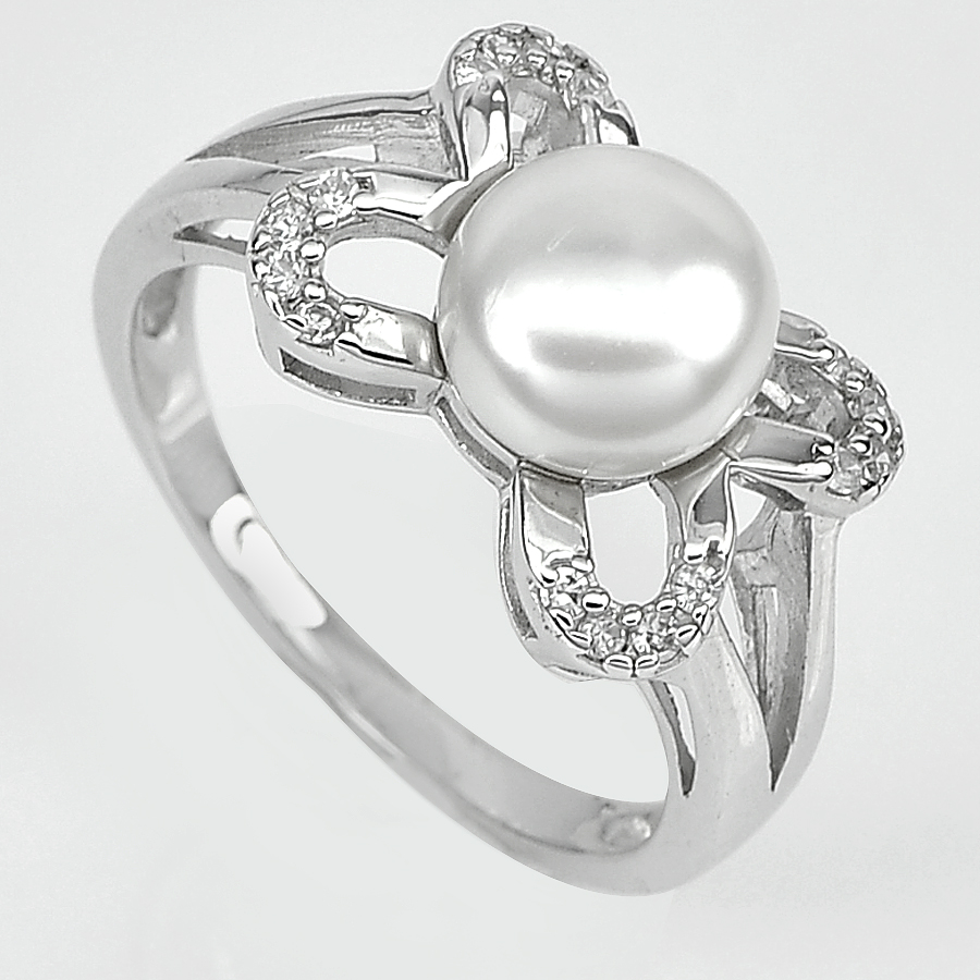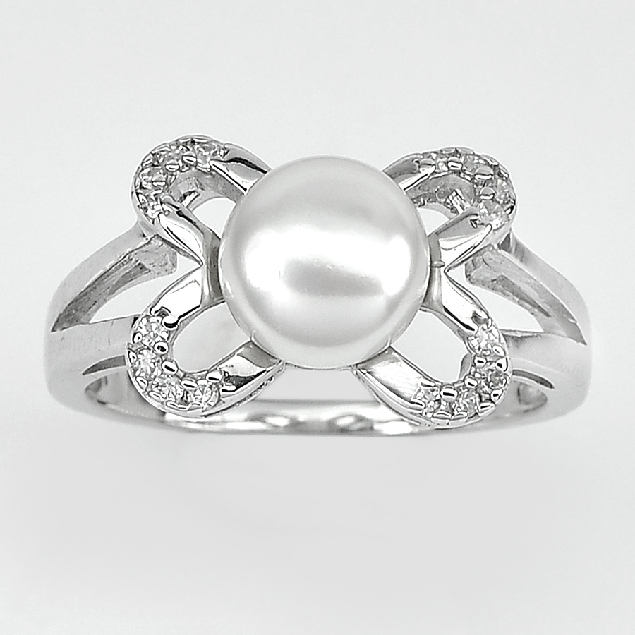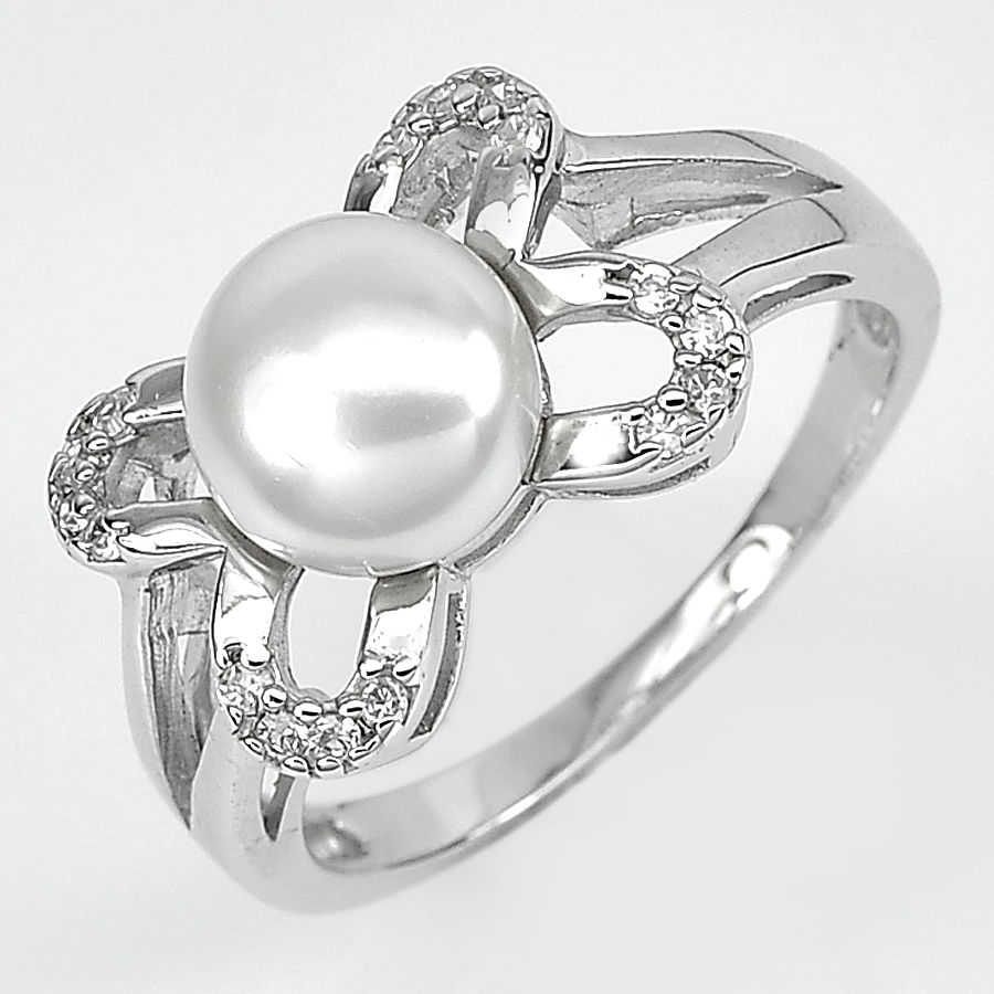 4.23 G. Attractive Natural White Pearl Real 925 Sterling Silver Ring Size 9
