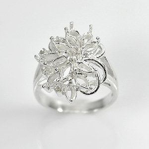 Wholesale 5 Pcs. / $56.42 Semi Mount 925 Sterling Silver Flower Ring Setting