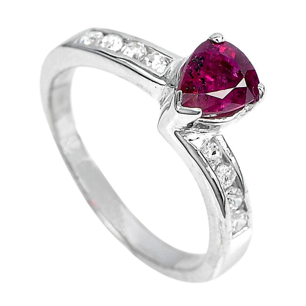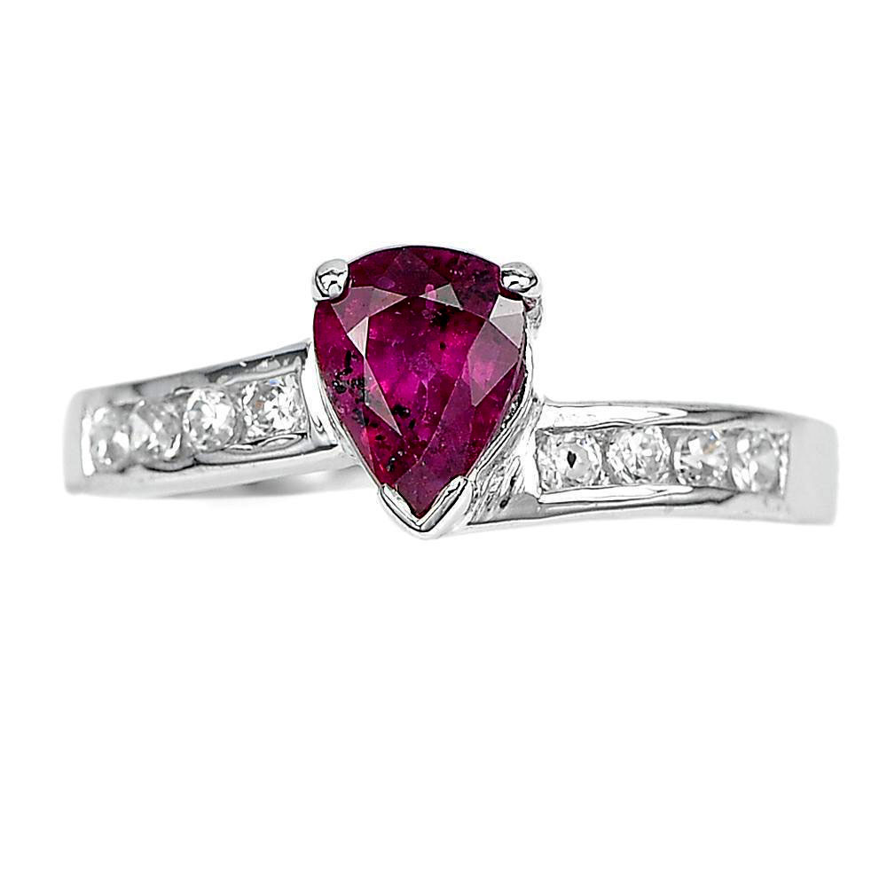 2.85 G. Pear Shape Gem Natural Red Ruby Real 925 Sterling Silver Ring Size 7