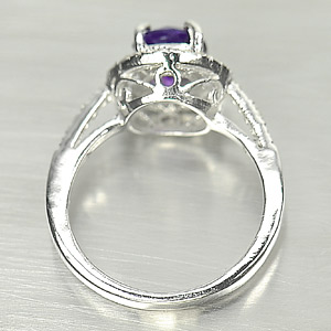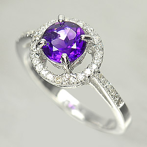 2.58 G. Natural Gem Round Purple Amethyst Real 925 Sterling Silver Ring Size 5