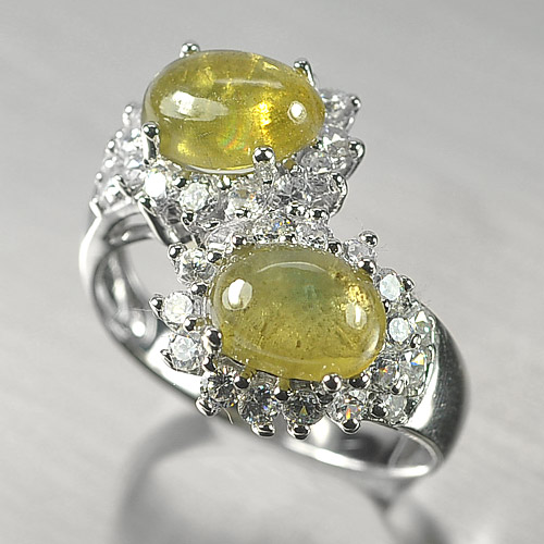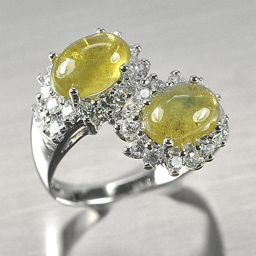 5.13 G. Natural Greenish Yellow Sapphire Real 925 Sterling Silver Ring Size 9