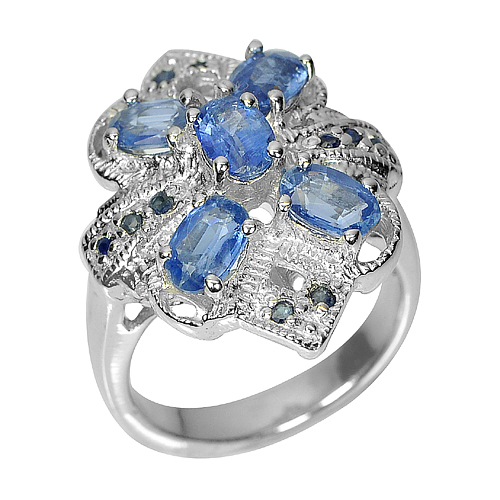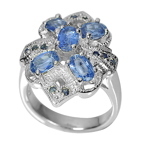 8.58 G. Natural Blue Kyanite Gems Real 925 Sterling Silver Jewelry Ring Size 7