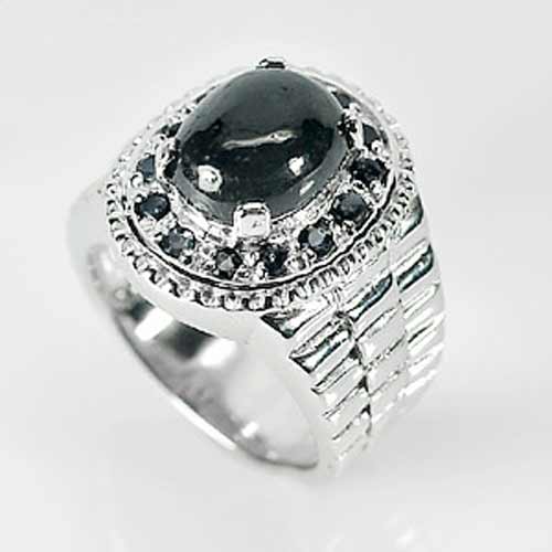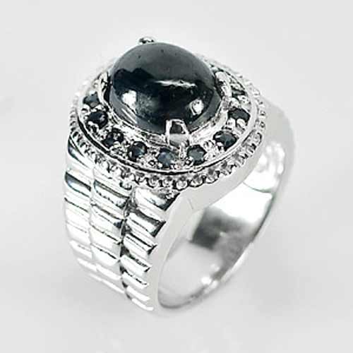 10.06 G. Natural Gemstone Black Sapphire Real 925 Sterling Silver Ring Size 8