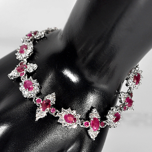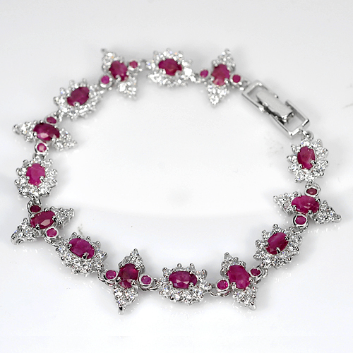 Beautiful Natural Ruby 925 Sterling Silver Jewelry Bracelet Length 8 Inch.