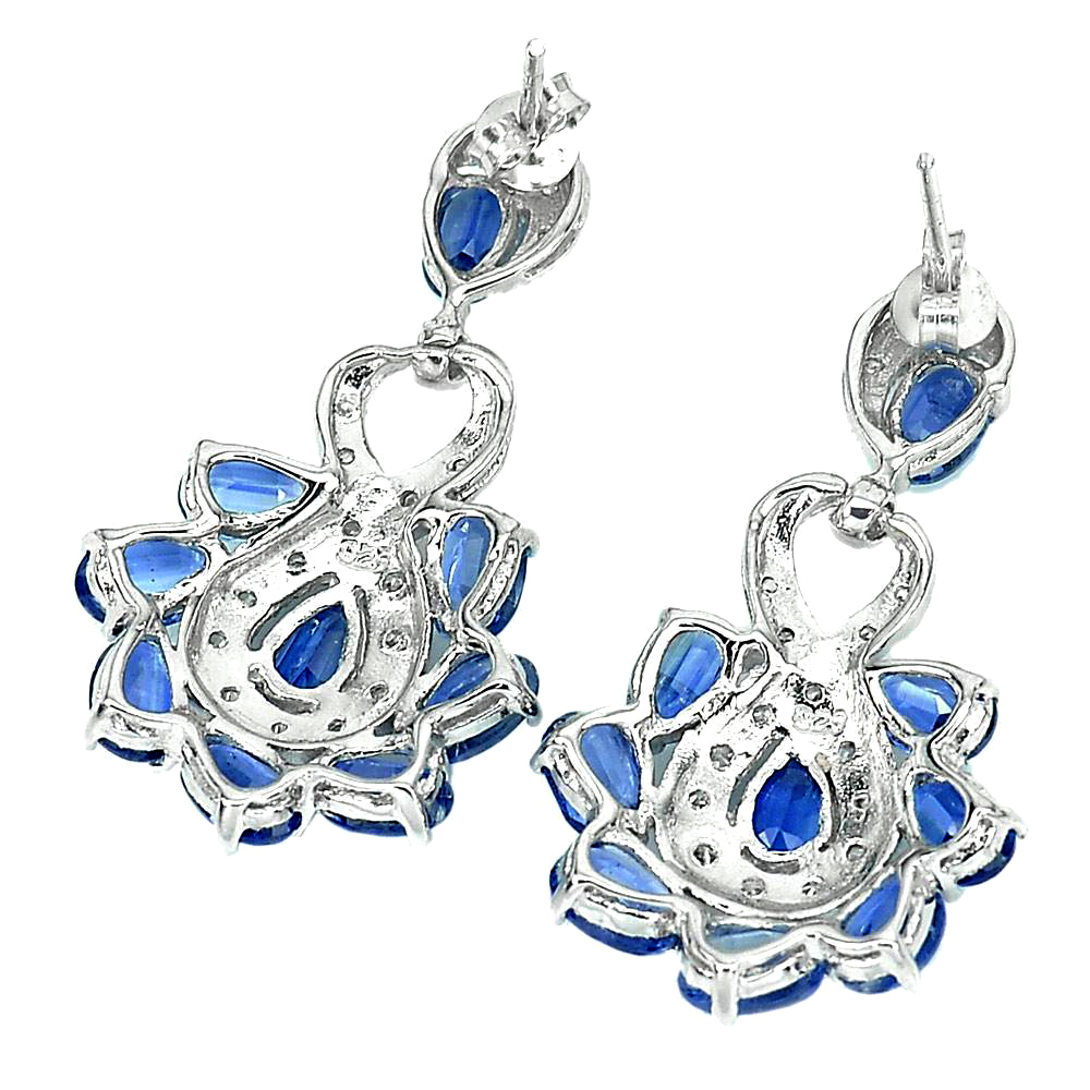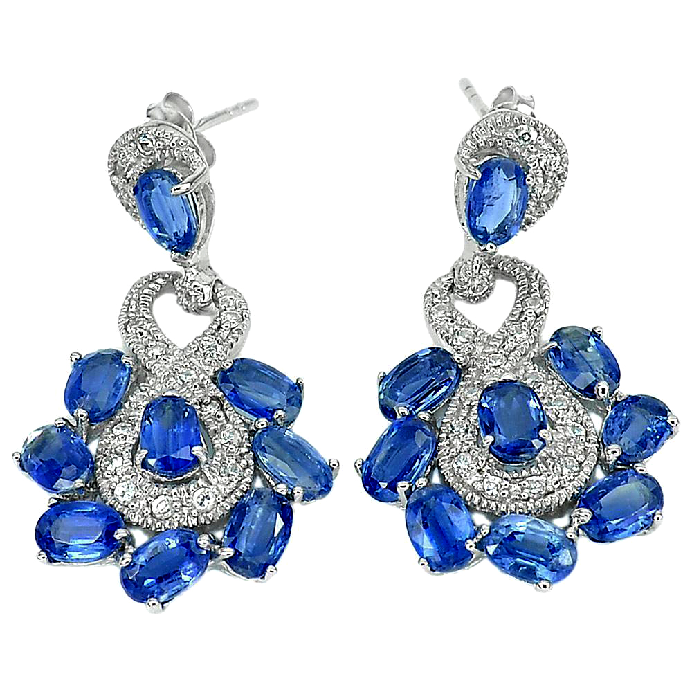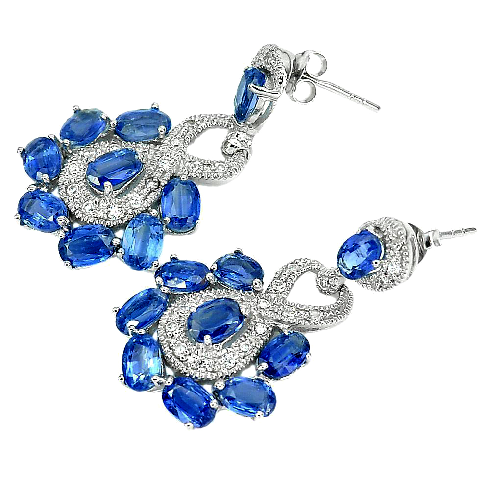 Blue Kyanite 925 Silver Jewelry Earrings 8.58 G. Oval Shape Natural Gemstones