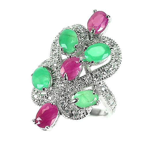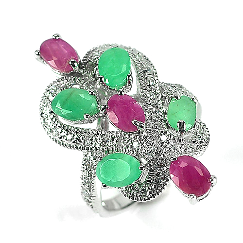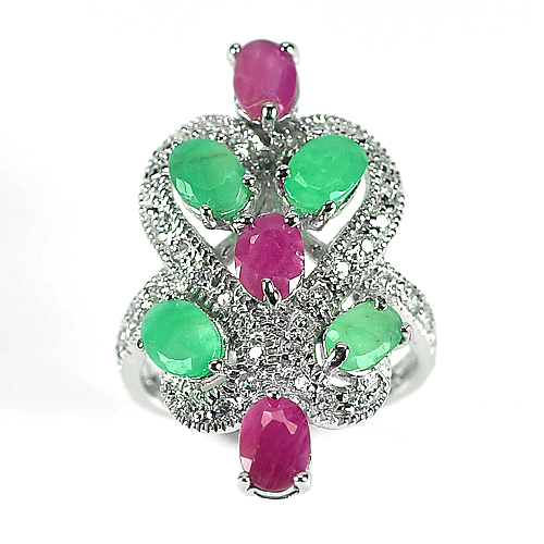 Natural Gem Emerald and Ruby Real 925 Sterling Silver Jewelry Ring Size 7