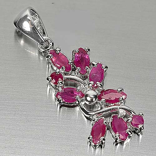 3.32 G. Natural Gemstone Red Pink Ruby Real 925 Sterling Silver Jewelry Pendant