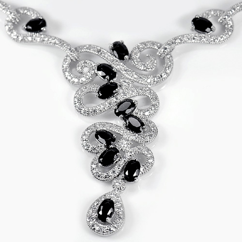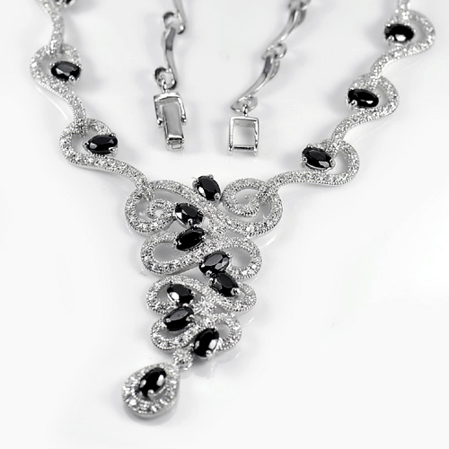 312.14 G. Nice Natural Black Spinel 925 Silver Jewelry Necklace Length 10.8Inch.
