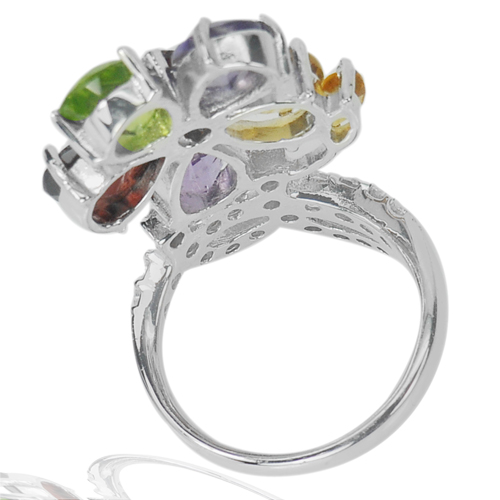Natural Amethyst Garnet Peridot Citrine and CZ 925 Sterling Silver Ring Size7.5