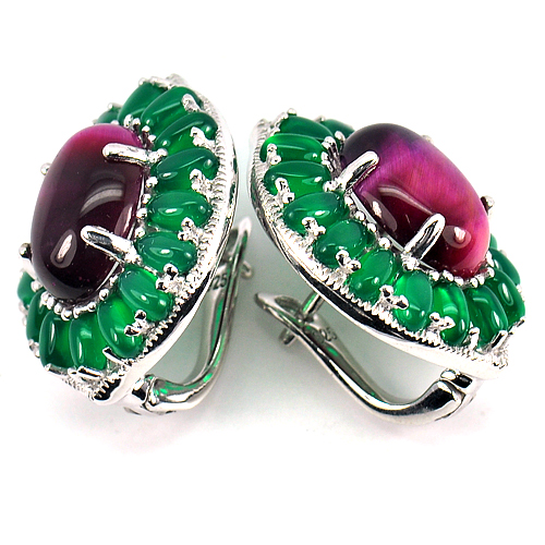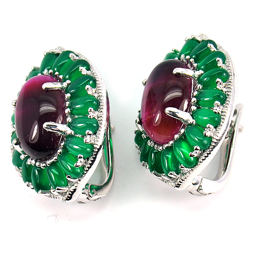 13.37 G. Natural Cabochon Red Green Aventurine Real 925 Sterling Silver Earrings