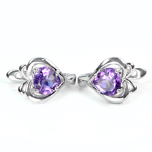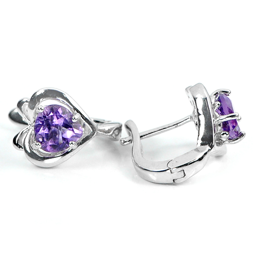 925 Sterling Silver Earrings Jewelry with Purple Amethyst 5.58 G. Natural Gem