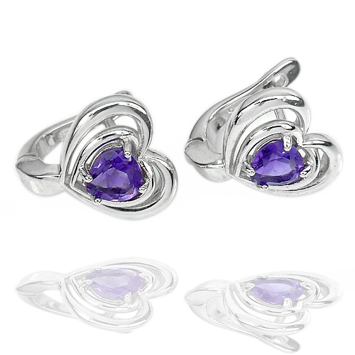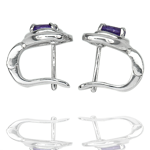 5.77 G. Natural Gems Purple Amethyst Real 925 Sterling Silver Earrings
