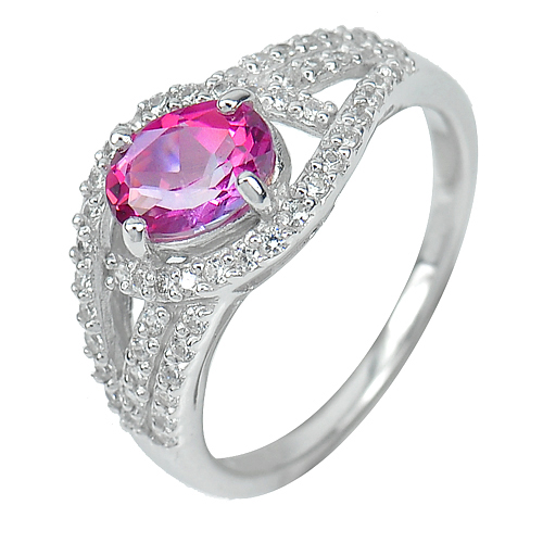 3.32 G. Oval Shape Natural Gem Pink Topaz Real 925 Sterling Silver Ring Size 8