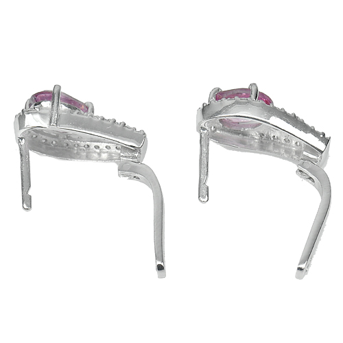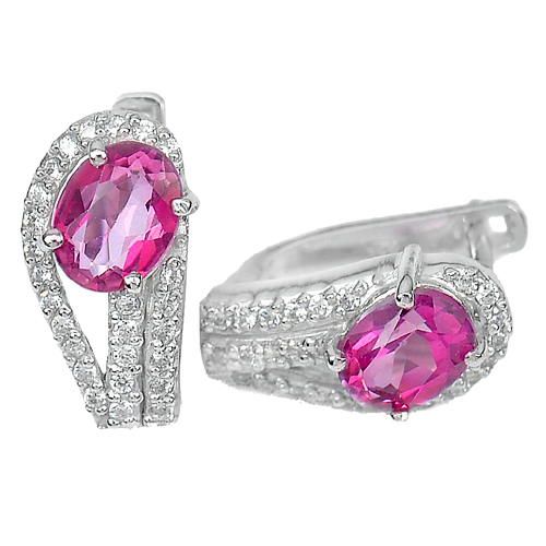 4.35 G. Oval Shape Natural Gemstone Pink Topaz Real 925 Sterling Silver Earrings