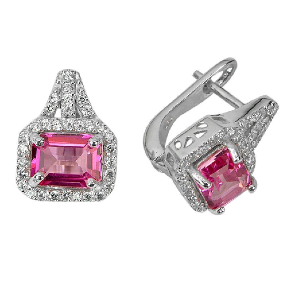 Pink Topaz Octagon Shape Real 925 Sterling Silver Earrings 5.38 G. Natural Gem