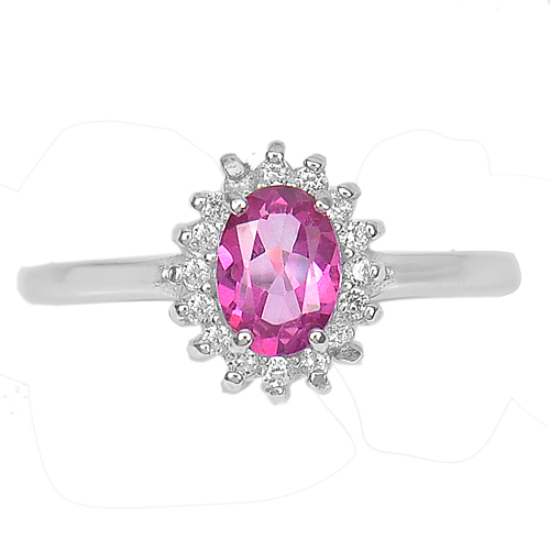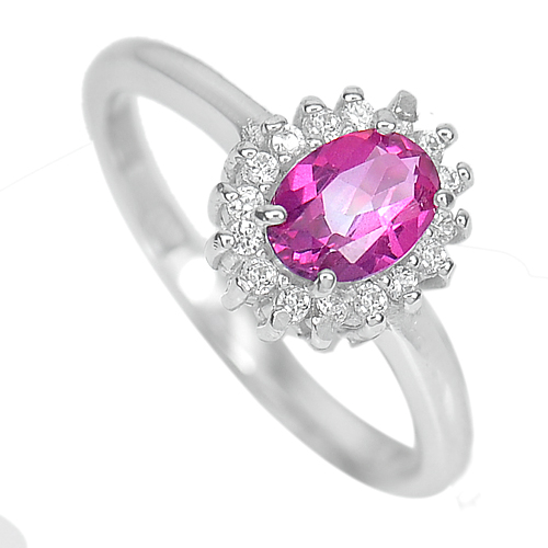 2.73 G. Lovely Natural Gem Oval Pink Topaz Real 925 Sterling Silver Ring Size 8