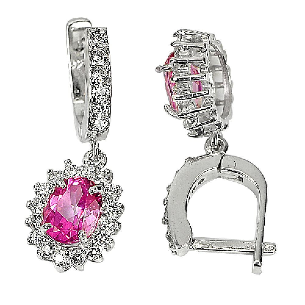 5.23 G. Oval Shape Natural Gem Pink Topaz Real 925 Sterling Silver Earrings