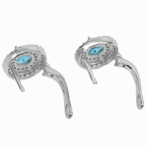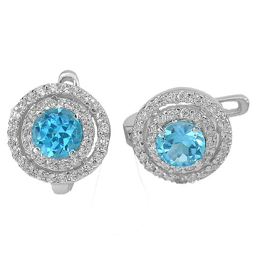 4.09 G. Natural Gemstones Swiss Blue Topaz Real 925 Sterling Silver Earrings