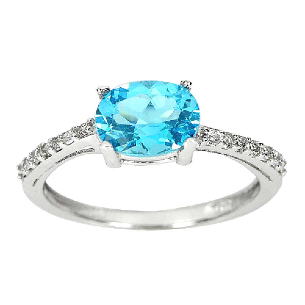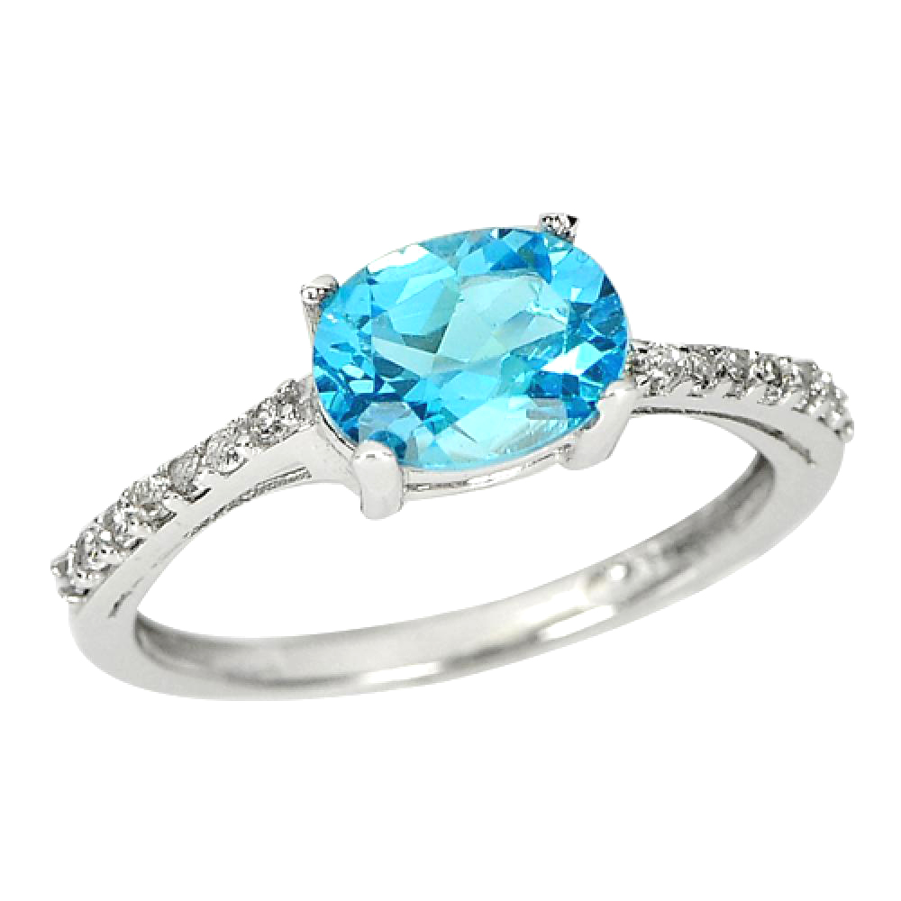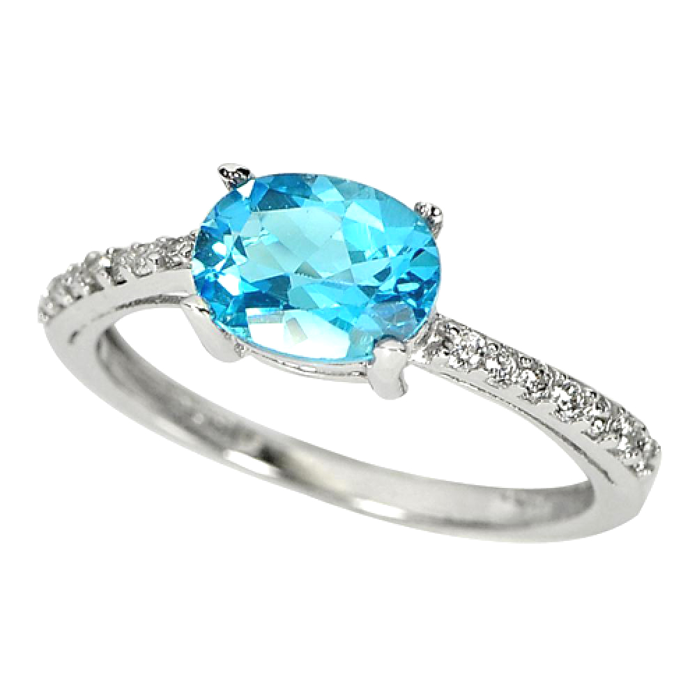 Natural Blue Topaz Oval Size 8 x 6 Mm. 1 Pc. and White CZ Round Size 1 x 1 Mm.