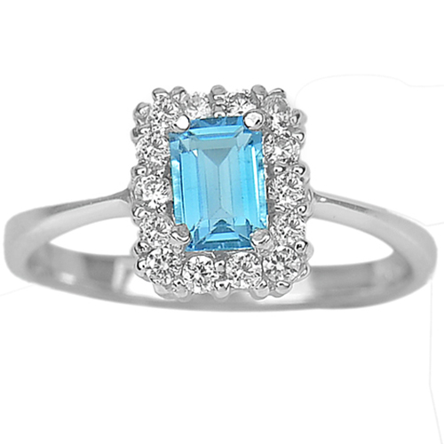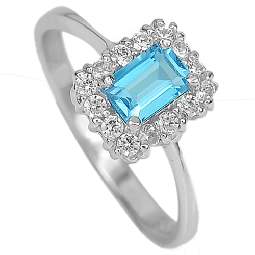 Real 925 Sterling Silver Ring with Natural Swiss Blue Topaz Gem and Cz Size 6.5