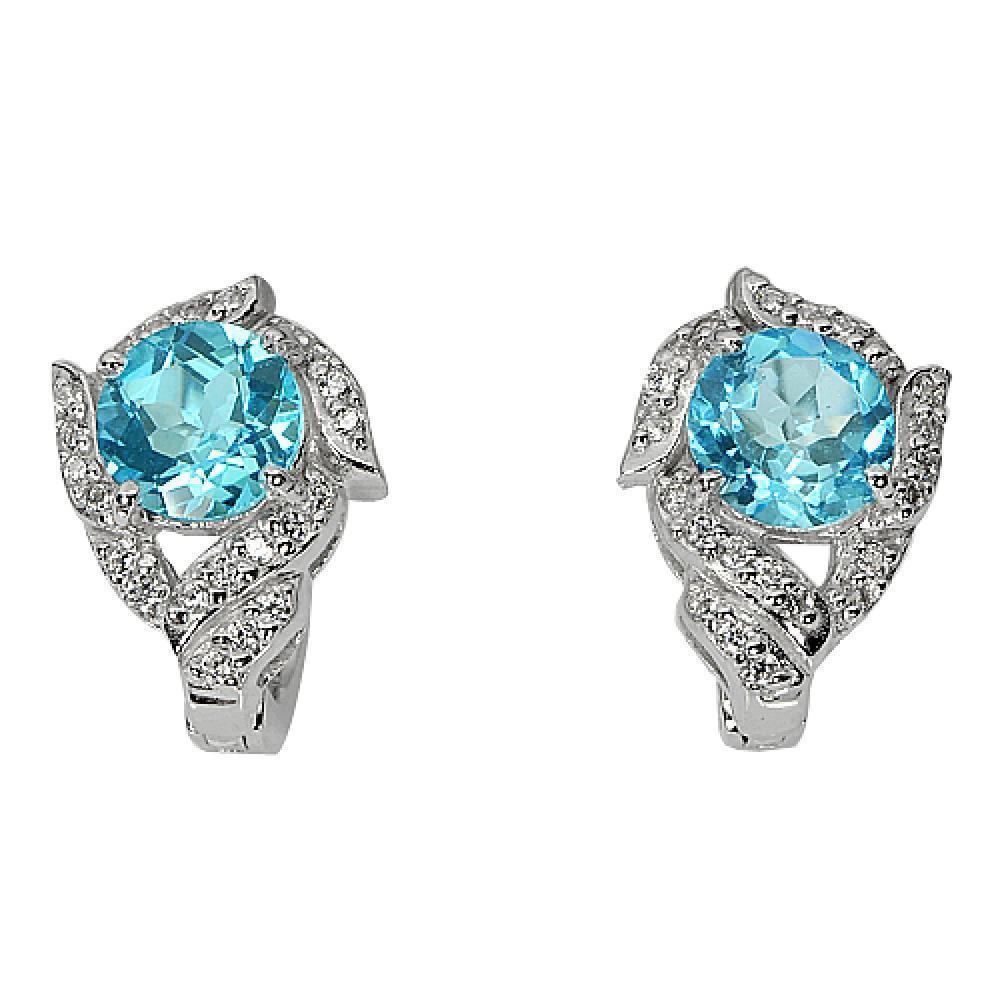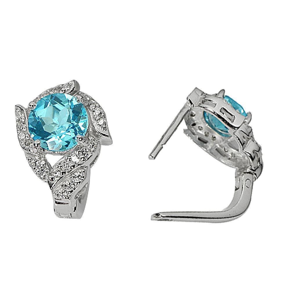 5.05 G. Natural Gems Swiss Blue Color Topaz Real 925 Sterling Silver Earrings