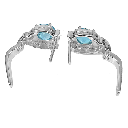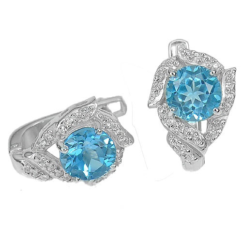 5.05 G. Good Natural Gems Swiss Blue Topaz Real 925 Sterling Silver Earrings