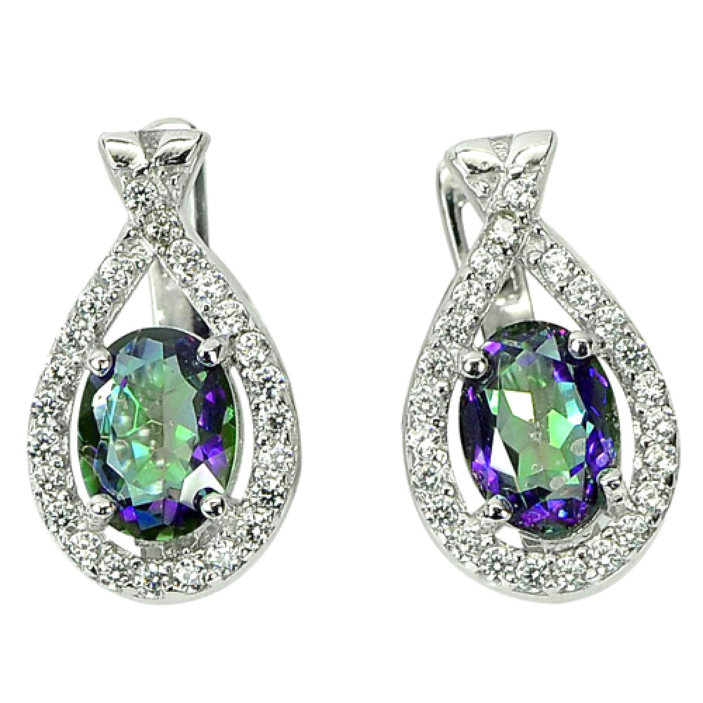 4.26 G. Charming Natural Gems Mystic Topaz Real 925 Sterling Silver Earrings