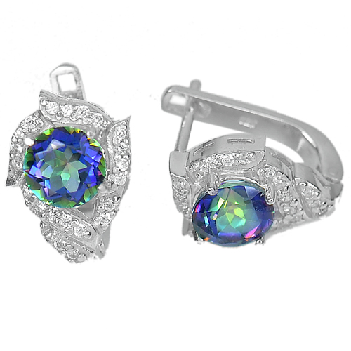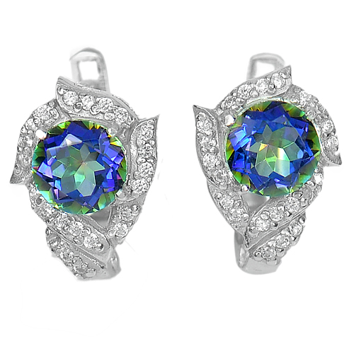 4.75 G. Good Natural Gems Mystic Topaz Real 925 Sterling Silver Earrings
