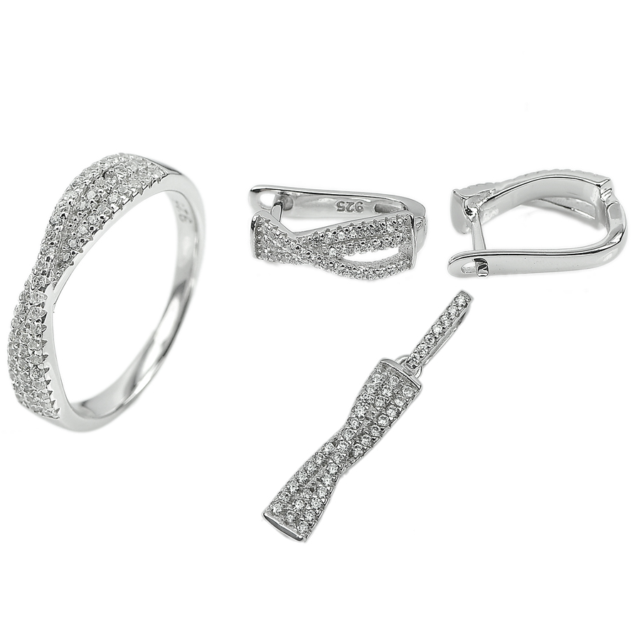 Round White CZ Size 1 x 1 Mm. Many. Pendant Size 27 x 4 Mm. Earrings Size 19 x 15 Mm. Ring Size 21 x 17 Mm.