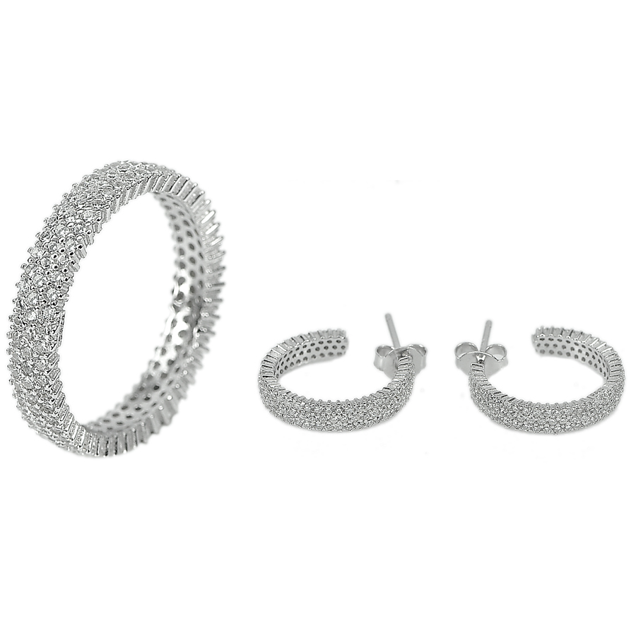Round White CZ Size 1 x 1 Mm. Many. Earrings Size 20 x 18 Mm. Ring Size 22 x 18 Mm.