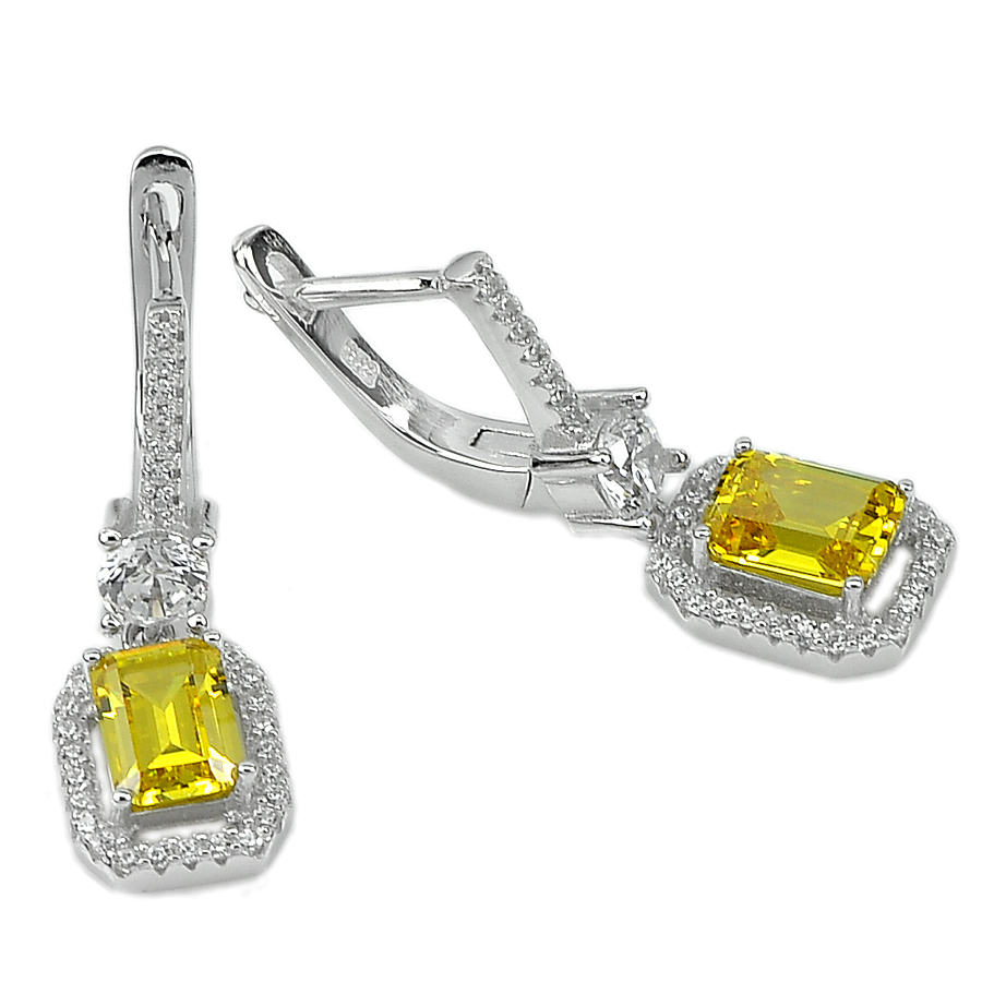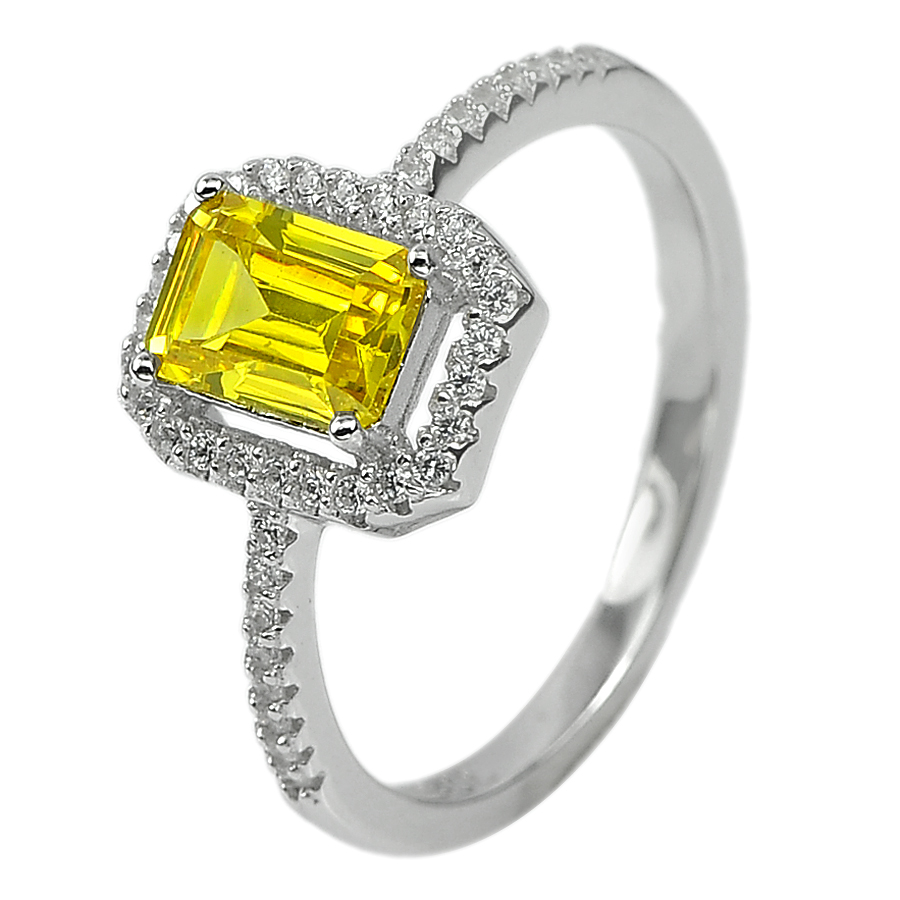 Round White CZ Size 1 x 1 Mm. Round White CZ Size 4 x 4 Mm. 3 Pcs. Octagon Yellow Size 7 x 5 Mm. 4 Pcs. Pendant Size 26 x 8 Mm. Earrings Size 28 x 11 Mm. Ring Size 21 x 18 Mm.