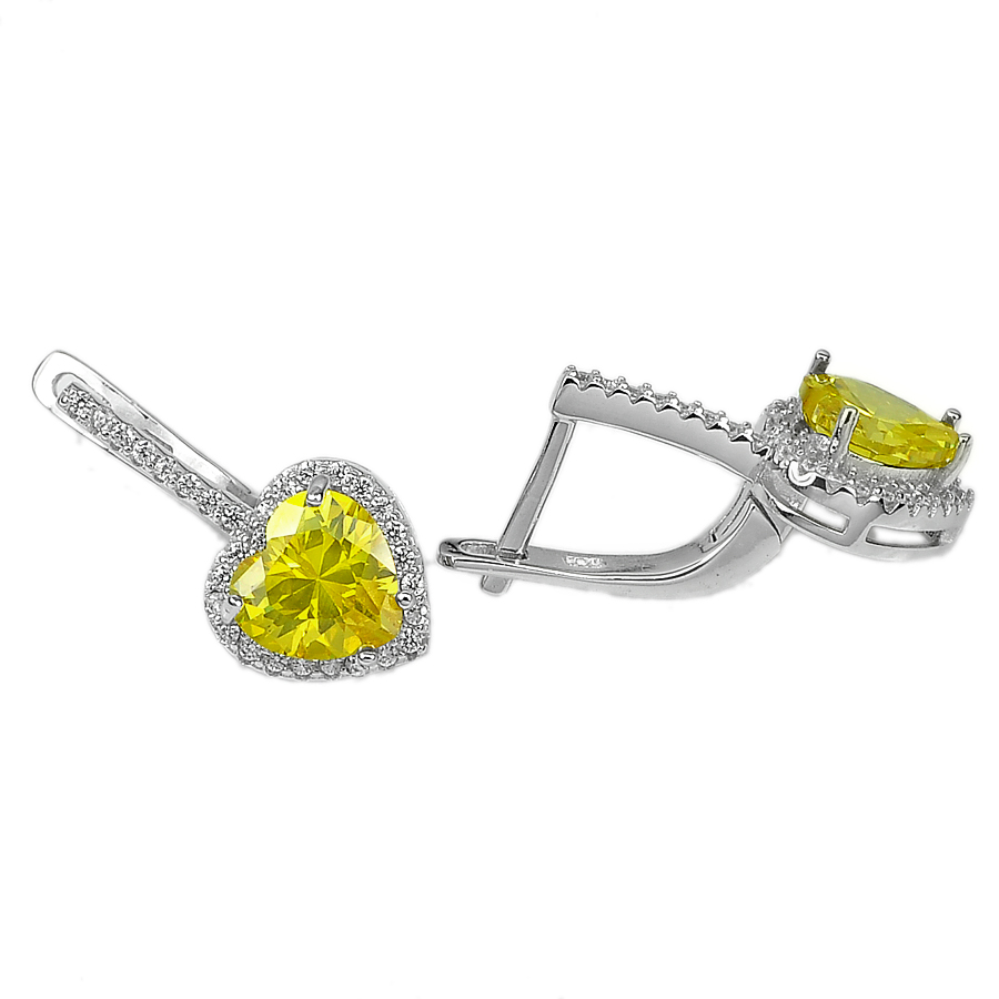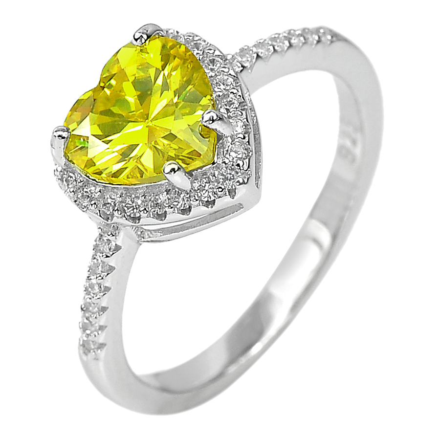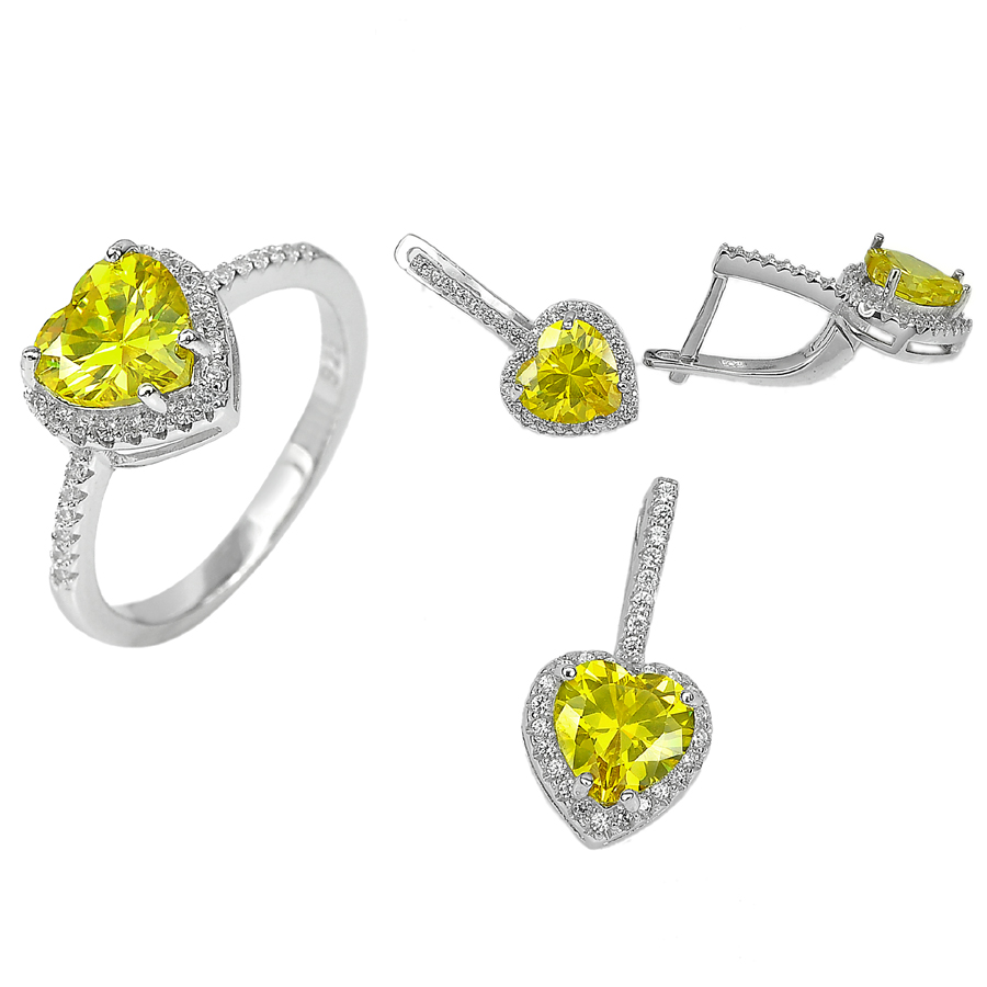 11.18 G. Heart Yellow CZ Real 925 Sterling Silver Pendant Earrings Ring Size 8